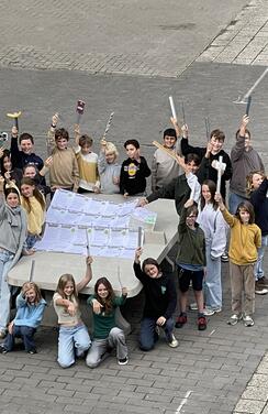 Er was 1 leerling van de klas waarvan de ouders geen toestemming hadden gegeven om op foto's te staan e.d., maar ik veronderstel dat dit filmpje geen probleem is aangezien ze niet herkenbaar in beeld komt (alleen haar hand/arm is te zien).