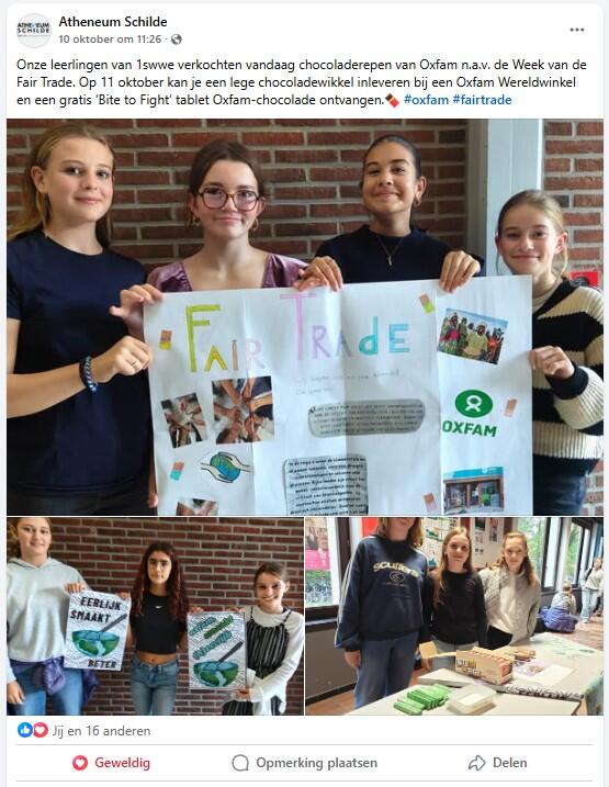 De eerste jaren van het Atheneum Schilde hebben allemaal een lesje gekregen over de huidige oneerlijke handelspraktijken en de noodzaak van fair trade, een grondige herziening en versterking van de EU-wetgeving rond oneerlijke handelspraktijken en een invoering en handhaving van een verbod op verkoop met verlies in heel de voedselketen.