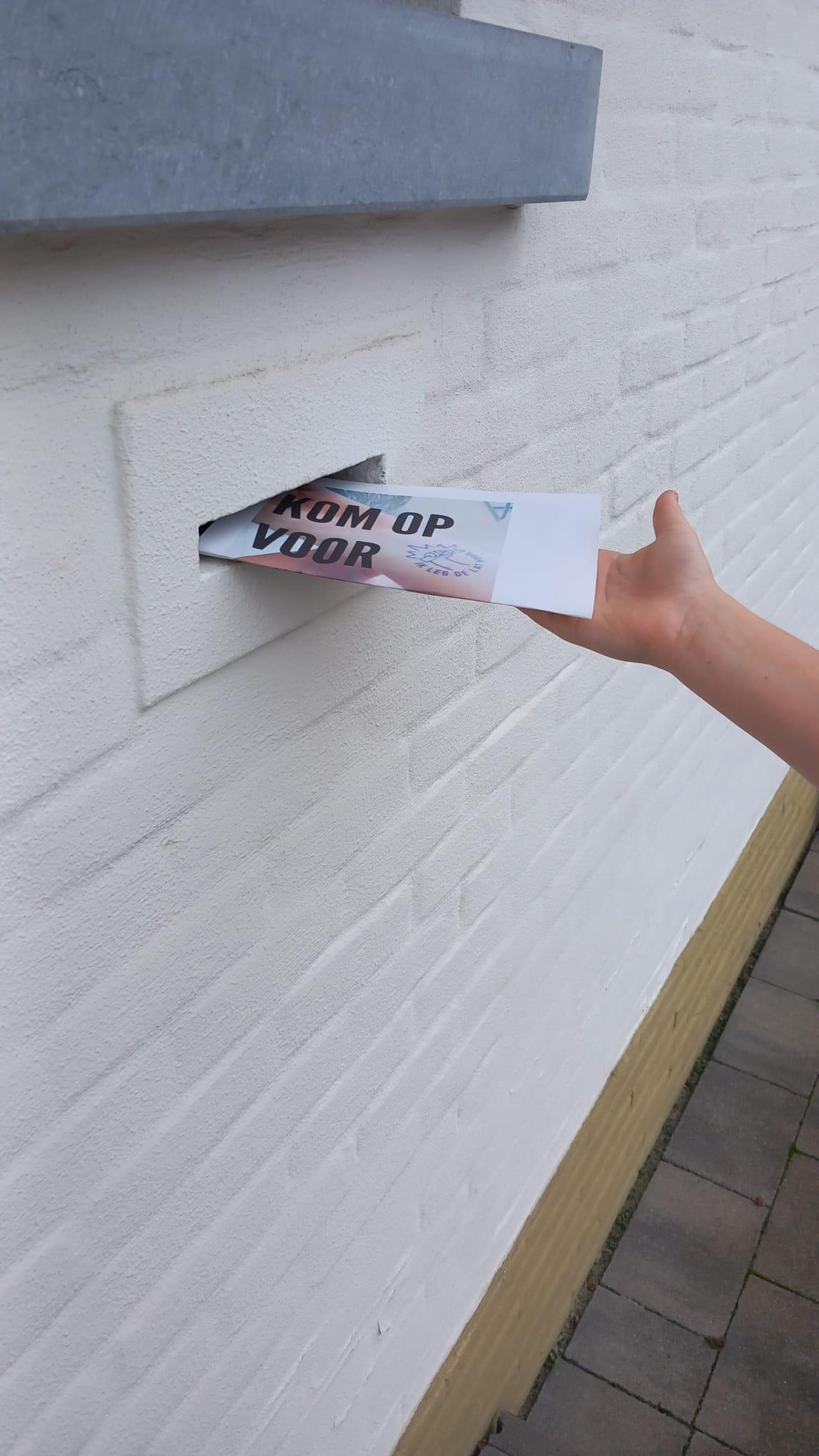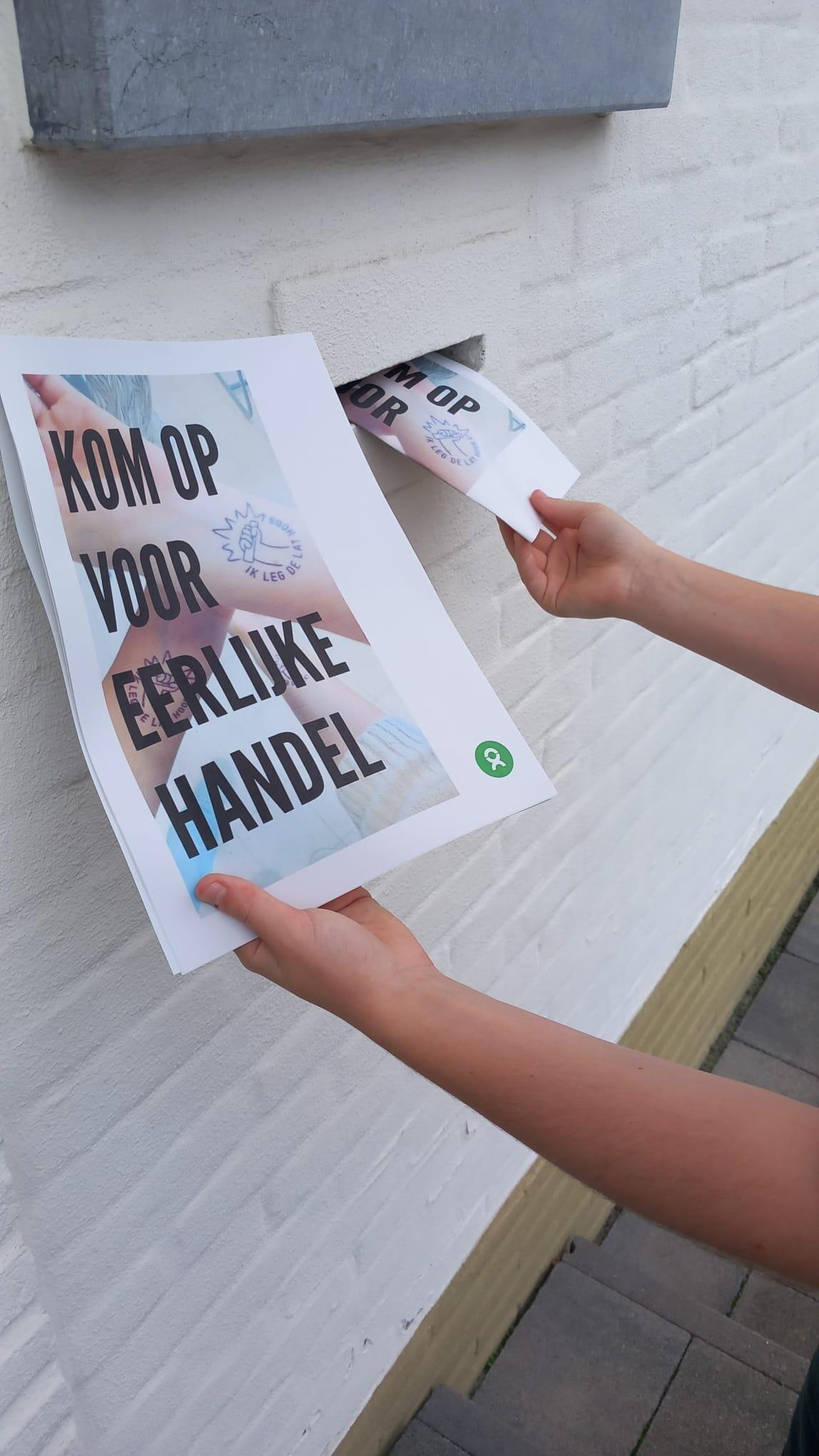 1 groep leerlingen, Staf, Luca en Oliver, maakte een affiche en ging deze in de brievenbus steken bij mensen om zo meer aandacht te vragen. Foto's in bijlage: 1SWWC - 1 - 2 - 3.