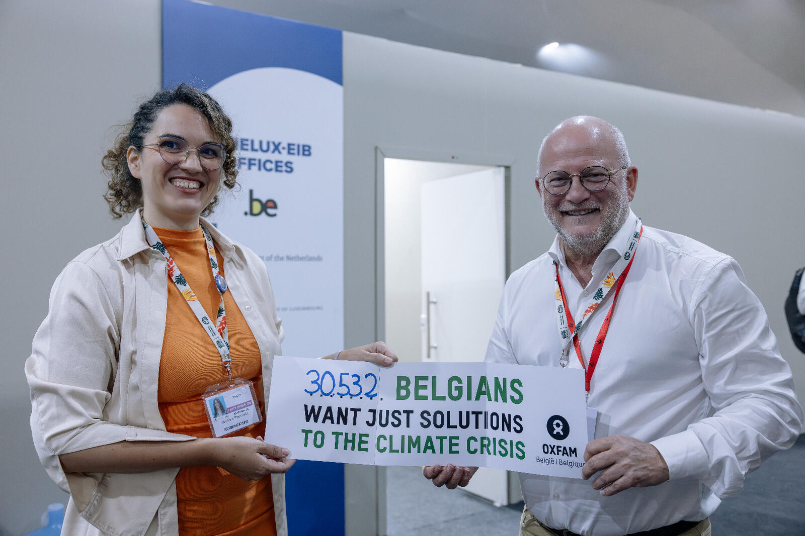 Meer dan 1 miljoen mensen wereldwijd, waaronder 30.000 in België, ondertekenden onze petitie om rijke vervuilers te laten betalen en te investeren in een rechtvaardige transitie. Alba, verantwoordelijk voor beleidsbeïnvloeding in klimaatrechtvaardigheid bij Oxfam, overhandigde de Belgische petitie aan federaal minister van Mobiliteit en Klimaat Jean-Luc Crucke en aan Waals minister Cécile Neven, bevoegd voor Energie en het Lucht-Klimaatplan. Tijdens deze ontmoetingen maakten we duidelijk dat mensen in België rechtvaardige klimaatomlossingen eisen. Een krachtig symbool dat burgers hun plaats opeisen aan de onderhandelingstafel. Onze stemmen tellen. Laten we ze blijven laten horen!