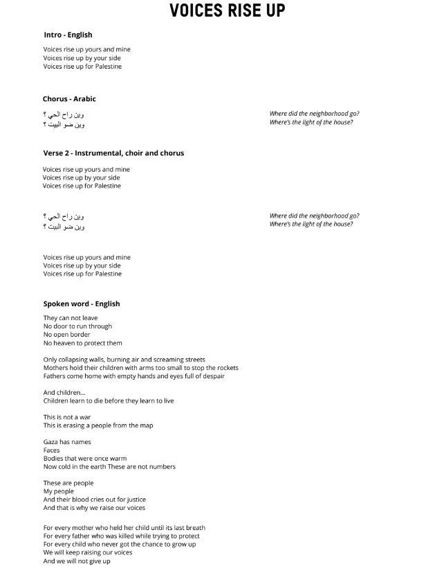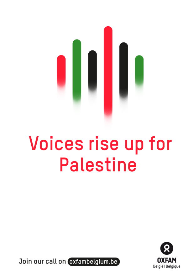 Download de instrumentale versie van 'Voices Rise Up for Palestine' in MP3 of WAV bestand. Je kan de soundtrack ook beluisteren of delen via de Soundcloud pagina van Oxfam.