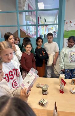 De leerlingen op school maakten via fairtadewinkeltje op school kennis met de verschillende producten, leerden de logo's herkennen en mochten proeven tijdens de speeltijd van een stuk Turks brood met fairtradechoco