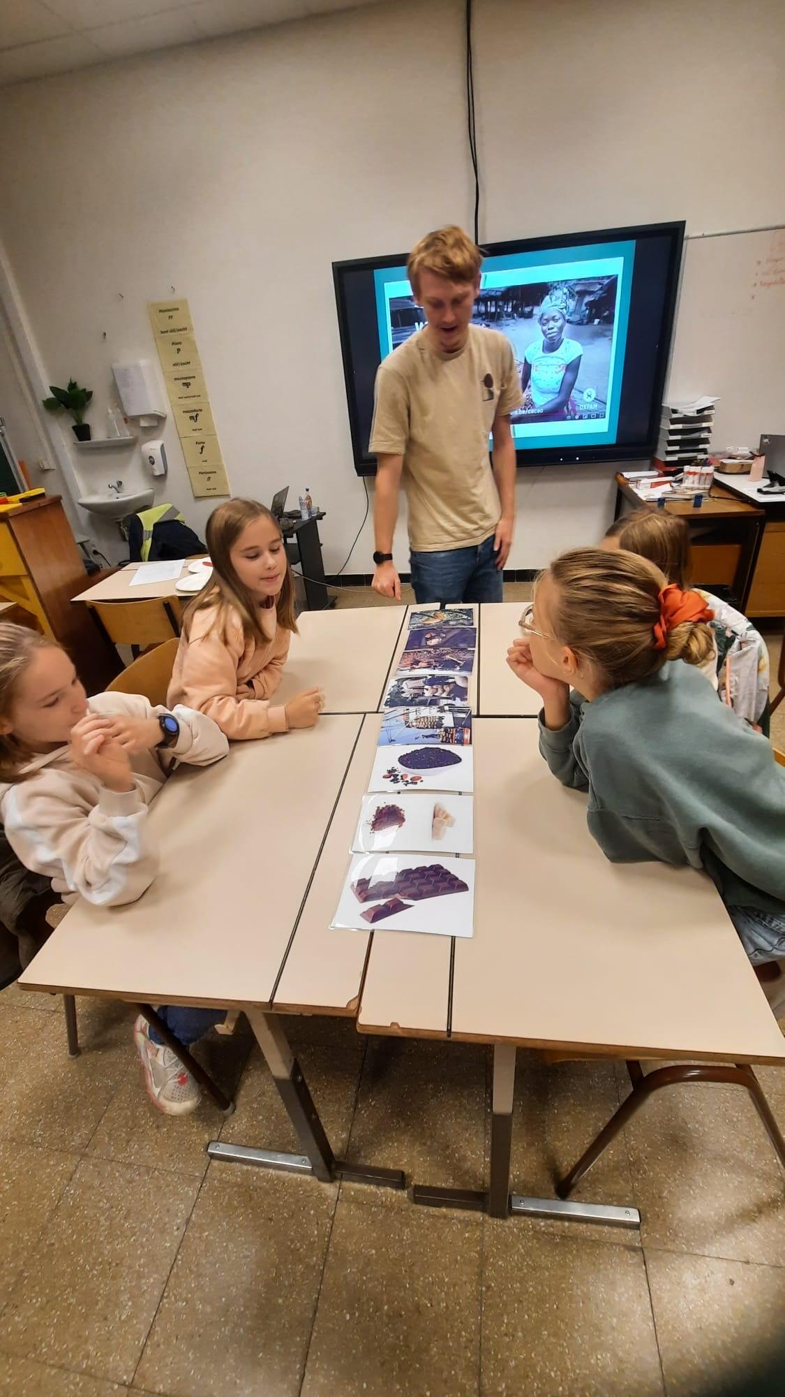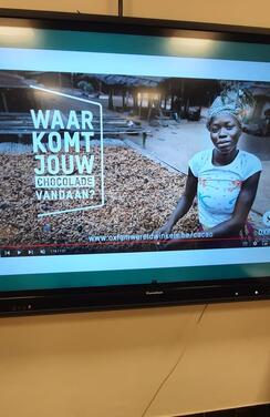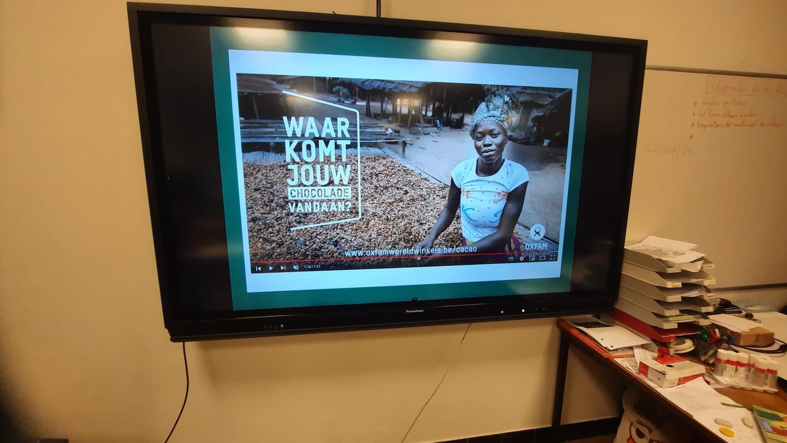 We nodigden vrijwilligers van de wereldwinkel uit om ons een les over fairtrade cacao te komen geven in de 5de leerjaren.