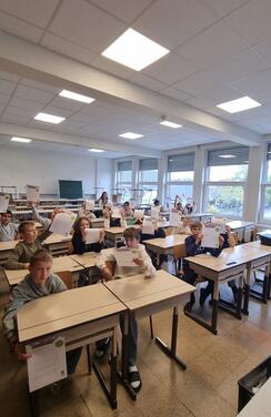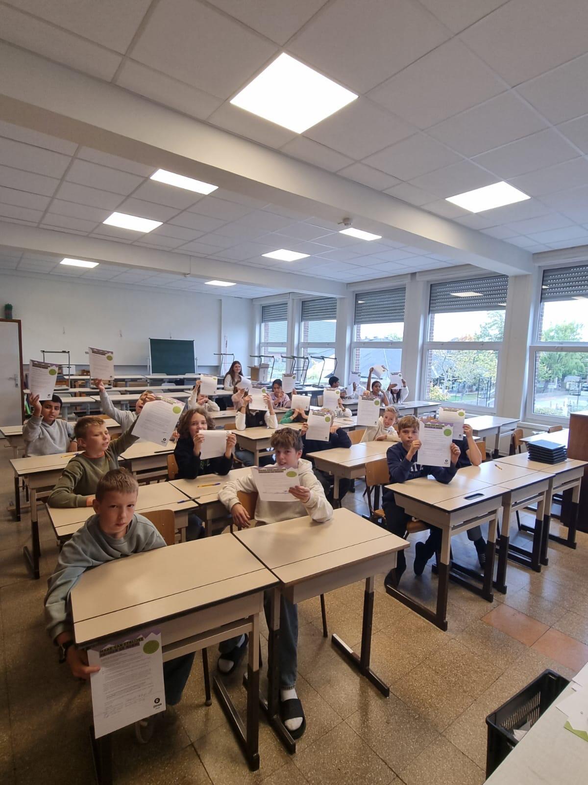 De 5des en 6des kregen de petitie mee naar huis en de tip om op zaterdag 11/10 langs te gaan in de wereldwinkel met een chocoladewikkel.