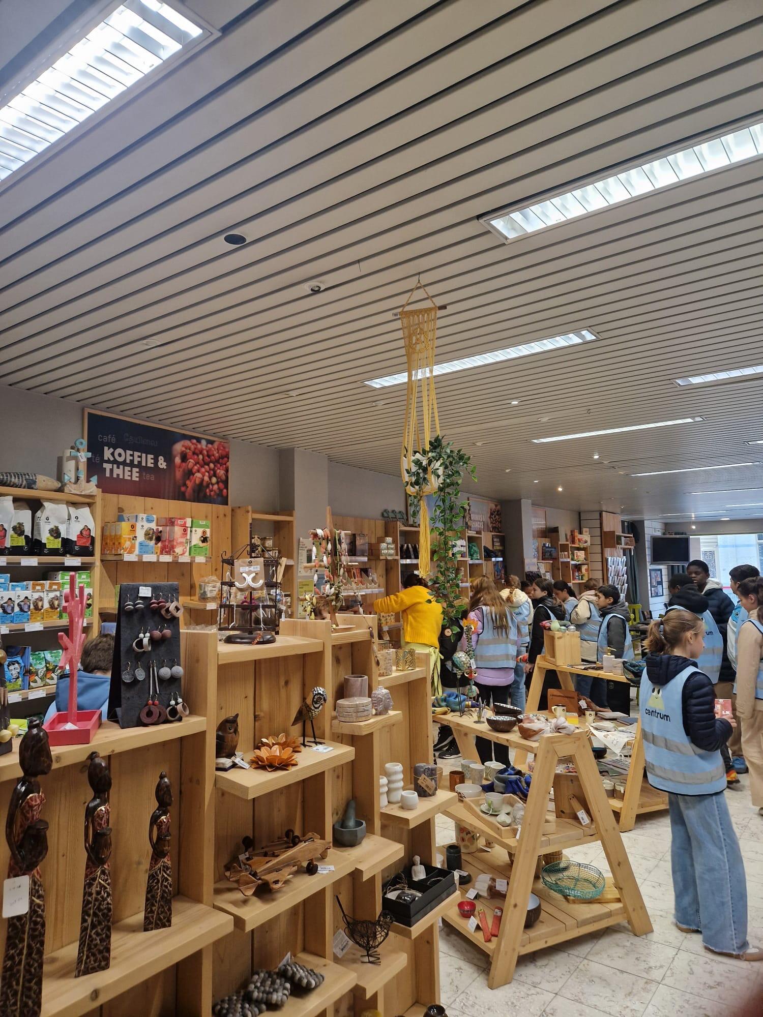 We bezochten met de zesdes de wereldwinkel waar we een woordje uitleg kregen over de werking en fairtrade en de zesdes kregen ook nog les over fairtrade bananen.