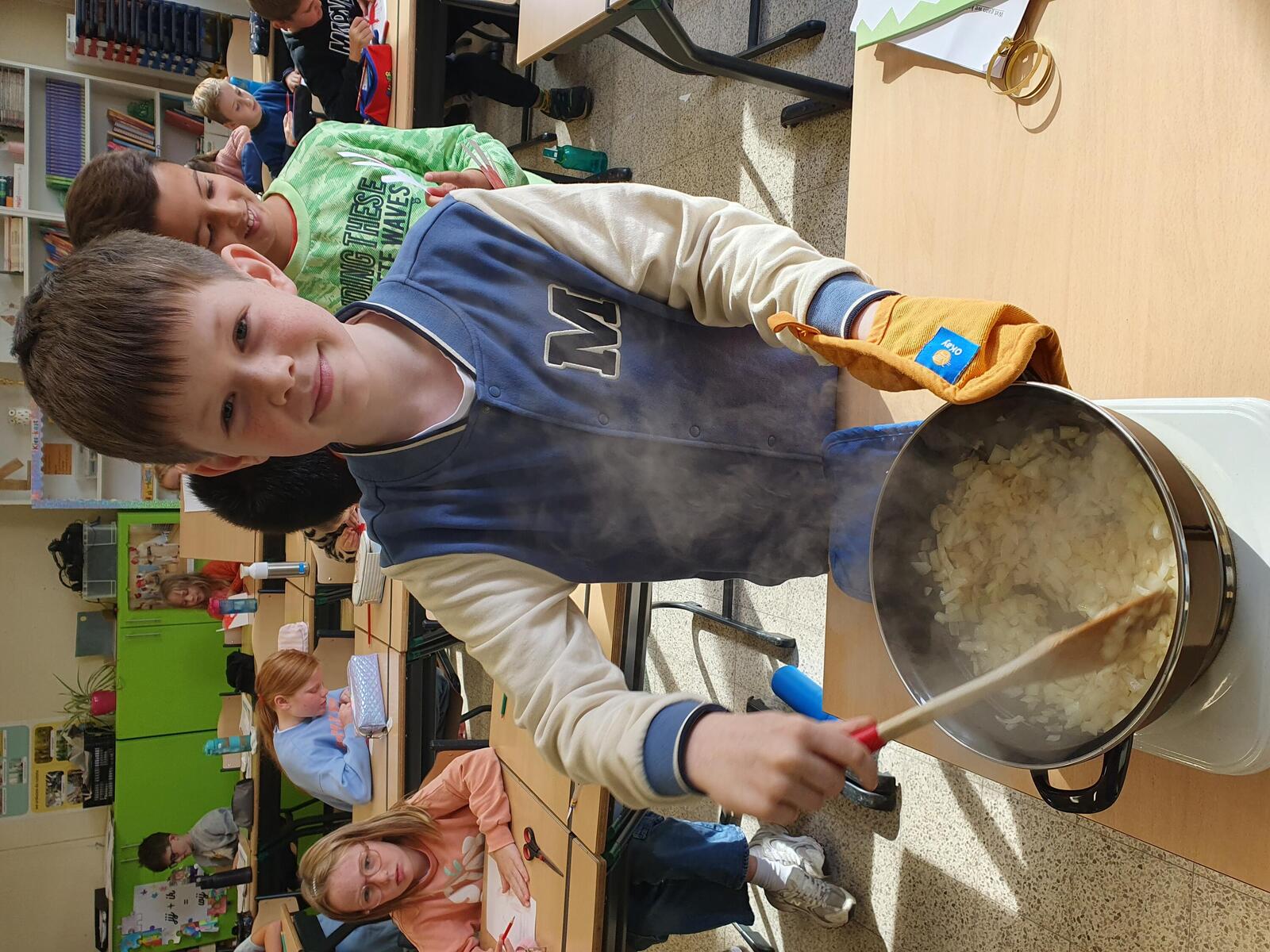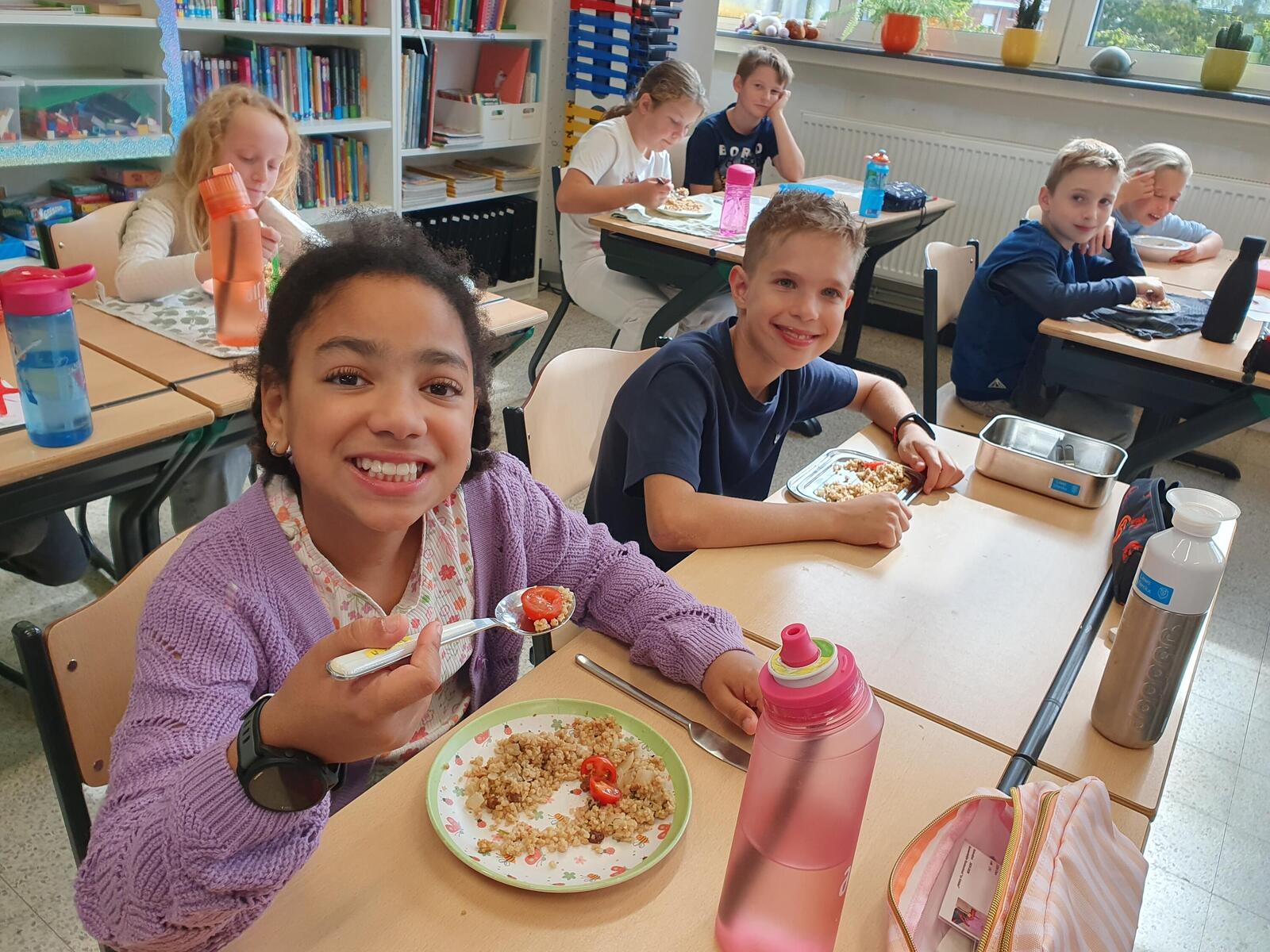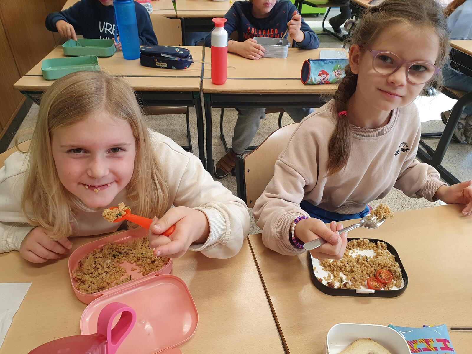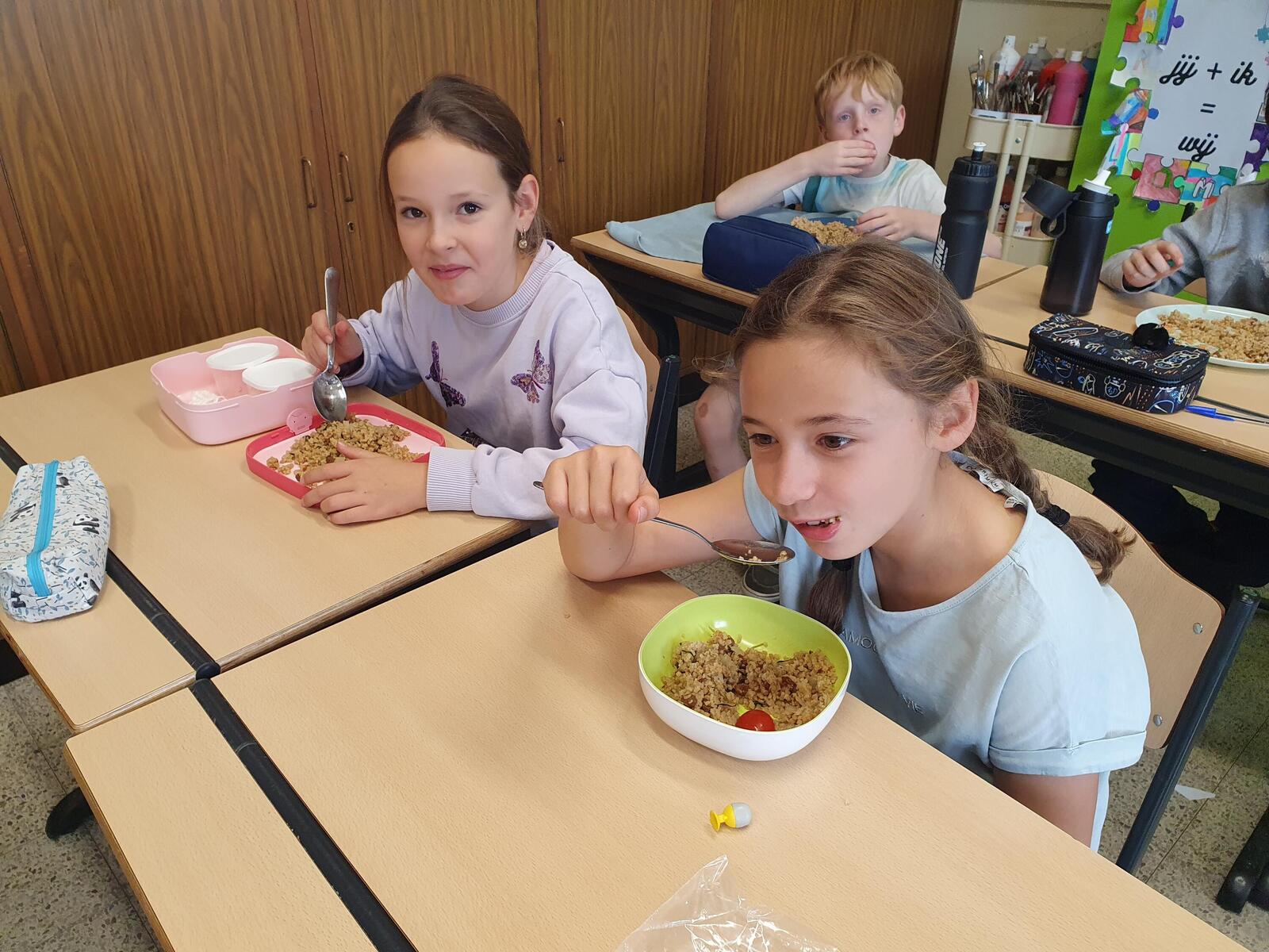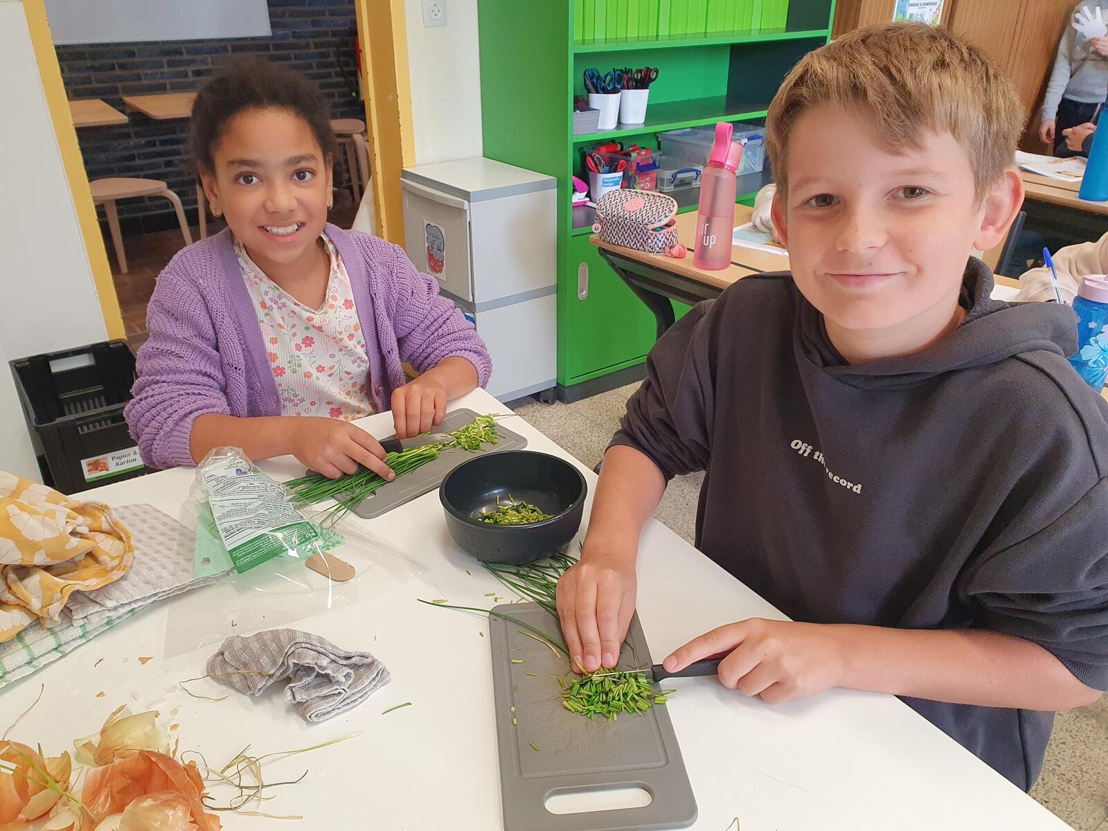 4e en 5e leerjaar gaat aan de slag met een kookpakket met producten uit de wereldwinkel. Ook deze leerkrachten duiden de herkomst van de producten.