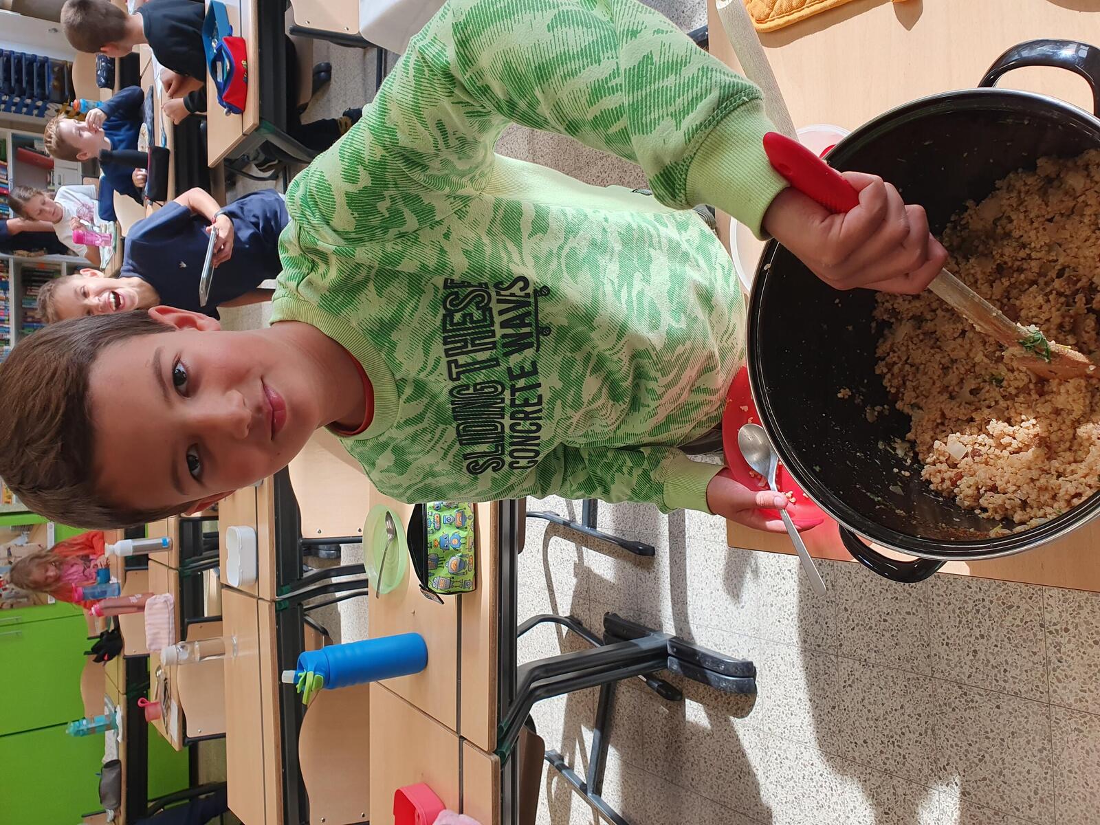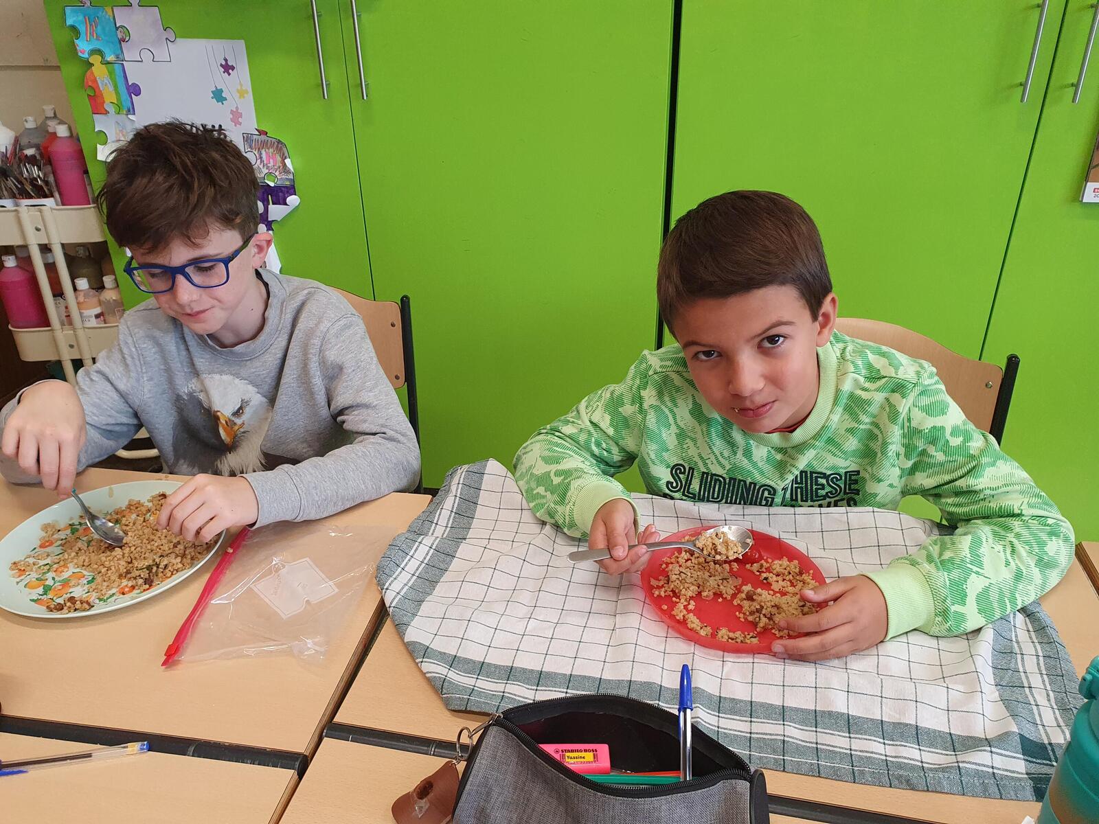 We kookten met (h)eerlijke producten uit de wereldwinkel en proefden dat het lekker was.