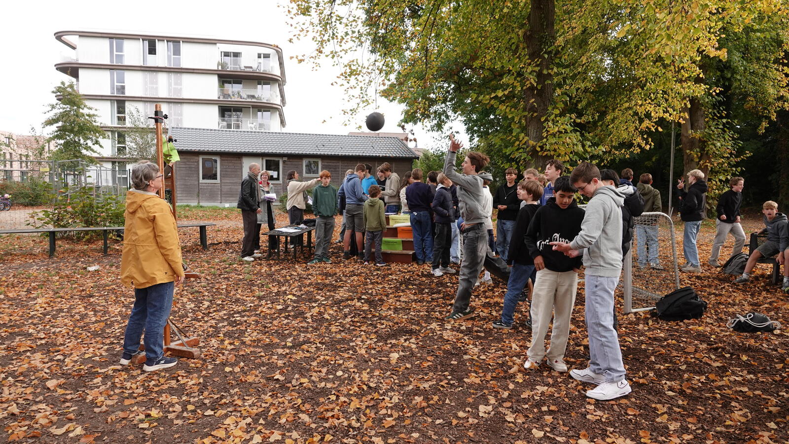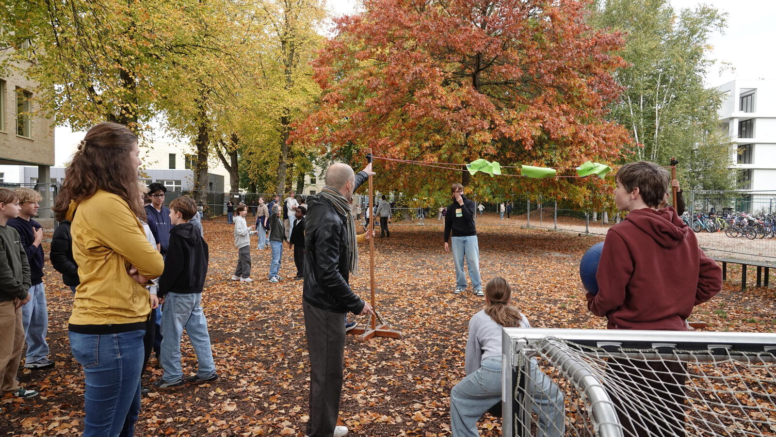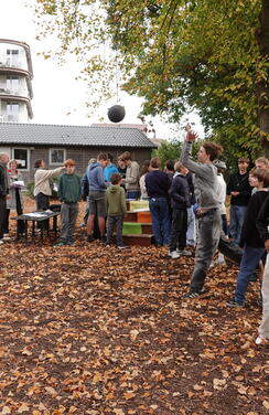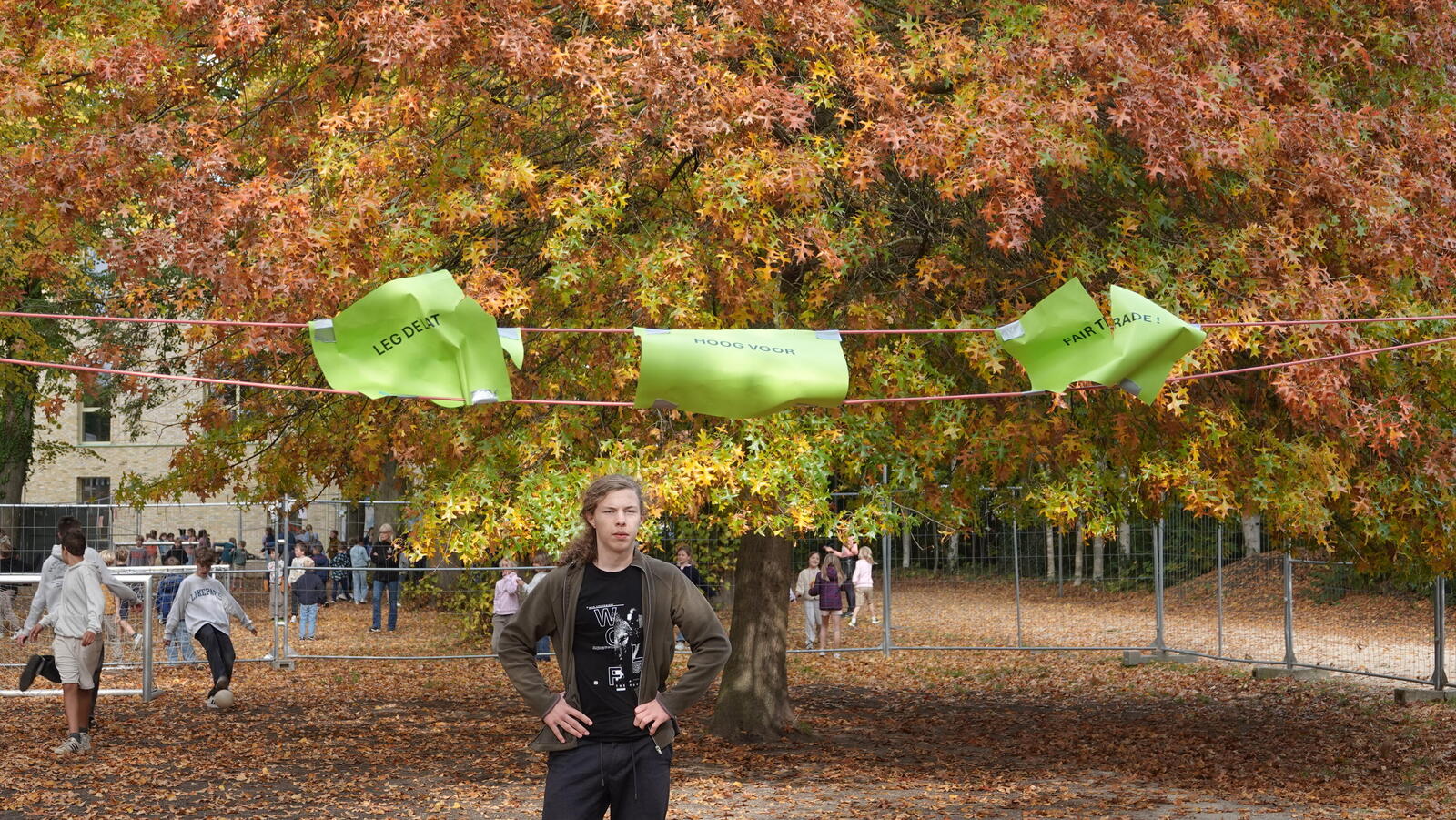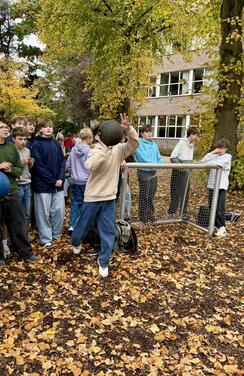 Veel leerlingen kwamen testen of ze de krachtbal over de lat konden gooien. Opmerkelijk veel jongens bij deze actie. Nadat ze dat gedaan hadden, mochten ze doorschuiven naar de tattooshop en de petitietafel. 105 leerlingen ondertekenden de petitie. Veel leerlingen wilden een tattoo, verschillende leerlingen wilden er ook twee of drie. Tijdens het zetten van de tattoos en bij de petitietafel konden we dan het gesprek aangaan over de boodschap van de actie en uitleggen waarover de petitie inhoudelijk gaat. Fijn ook om te zien dat de leerlingen die al jarenlang meedoen in onze Wereldwinkel Op School ook hier weer present tekenden om de lat-actie en het tattoosalon te bemannen. De vier dagen na deze actie hebben we chips en chocolade verkocht op de speelplaats. Ook met veel succes.