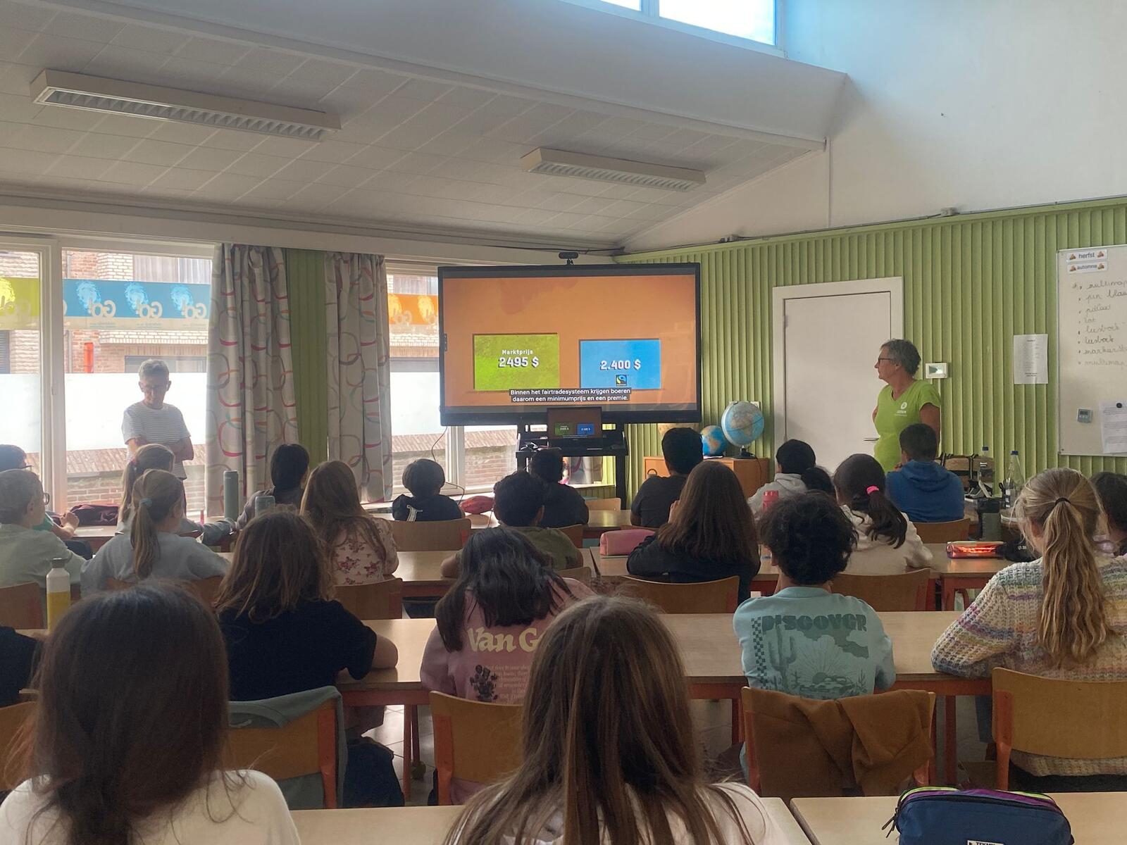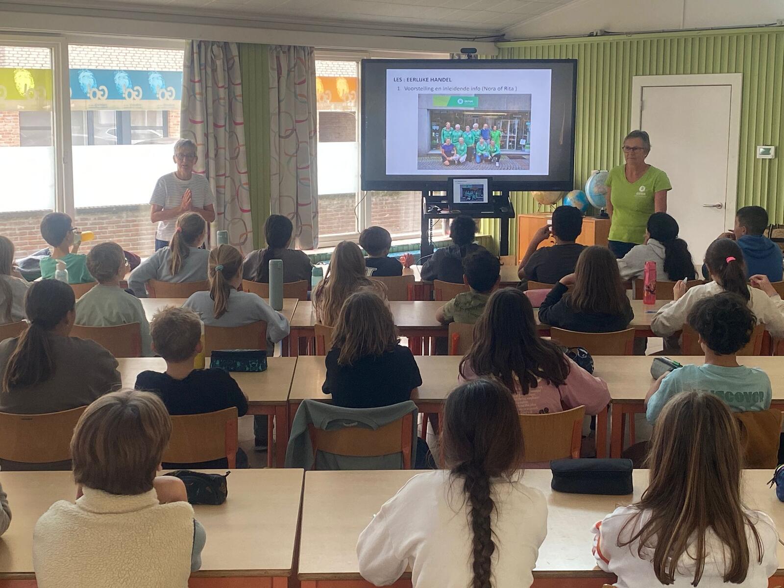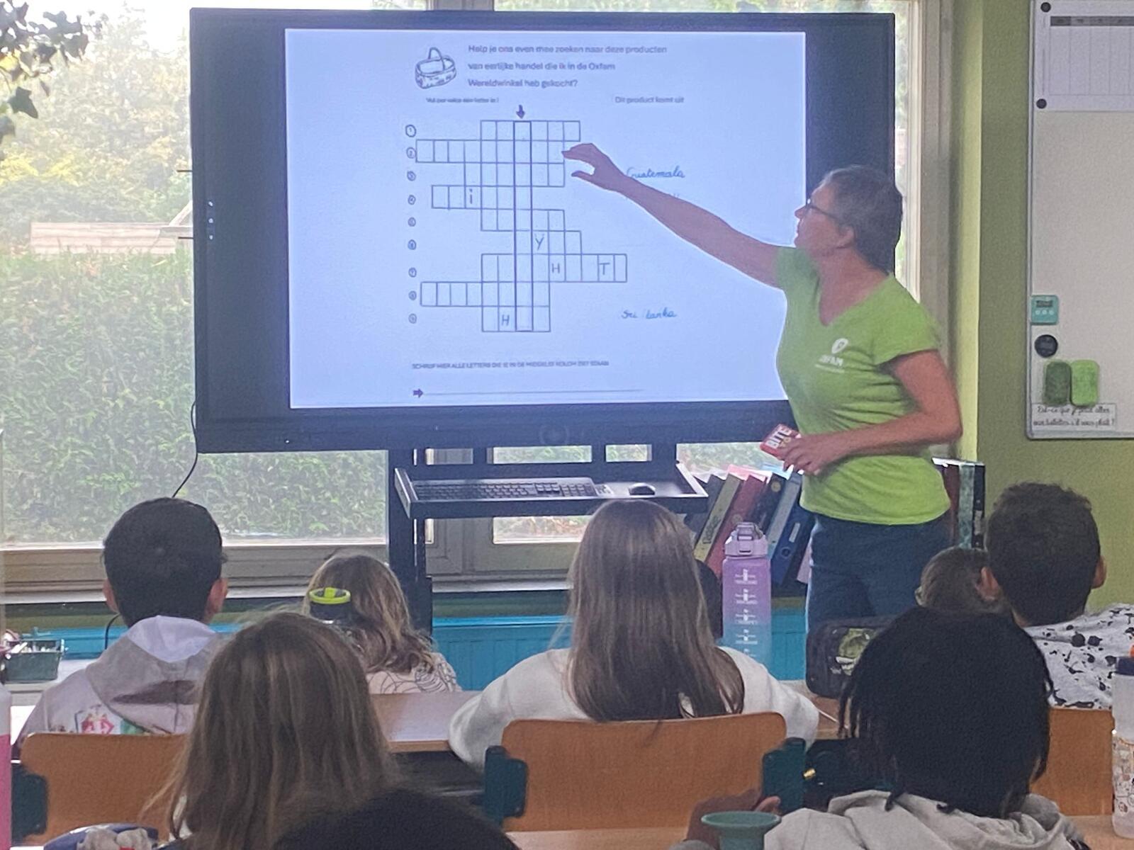 Drie enthousiaste Oxfam-vrijwilligers kwamen in het vijfde en zesde leerjaar van onze school Kiliaan een les geven over Fair Trade. Op een boeiende en interactieve manier vertelden ze hoe eerlijke handel bijdraagt aan een betere wereld voor iedereen. De leerlingen luisterden geboeid, stelden veel vragen en deden actief mee aan de opdrachten. Hun enthousiasme werkte aanstekelijk! Ook wij, als leerkrachten, kijken met een goed gevoel terug op deze samenwerking. Het was een fijne, leerrijke en geslaagde activiteit die zeker voor herhaling vatbaar is!