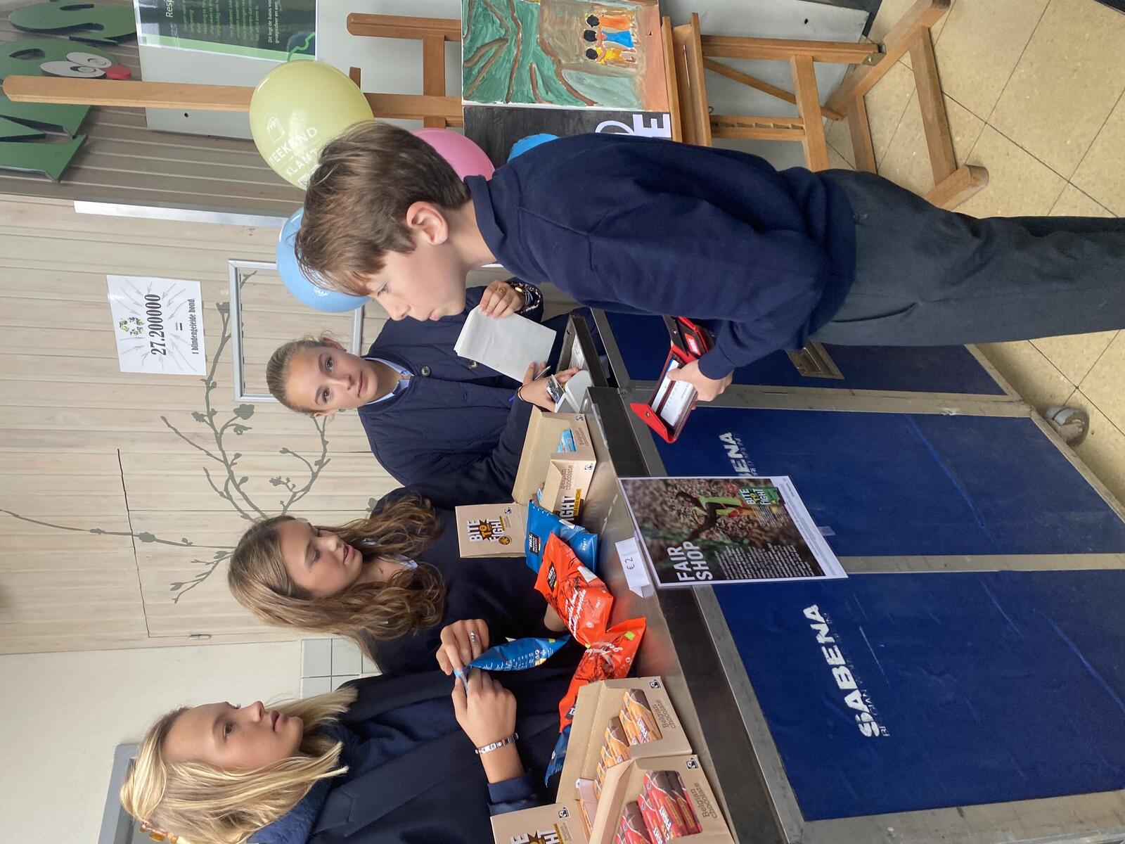 Inrichting van een MOS-winkeltje met verkoop van Oxfam-producten, gekoppeld aan communicatieacties rond Fair Trade, Oxfam en meer.