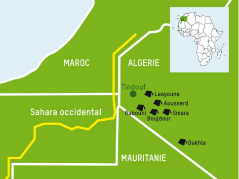 173 000 Sahraoui.es vivent dans cinq camps situés à une distance d’entre 30 et 180km de la ville algérienne de Tindouf, dans des conditions d’isolement extrême. Chaque camp porte le nom d’une ville majeure du Sahara occidental : Aousserd, Smara, Dakhla, Laâyoune et Boujdour. Situés au cœur du désert du Sahara, ils sont caractérisés par des sols arides (la hammada), des températures torrides et une rareté structurelle de l’eau, qui limitent l’activité agricole traditionnelle et compromettent la sécurité alimentaire.