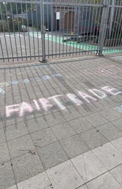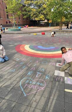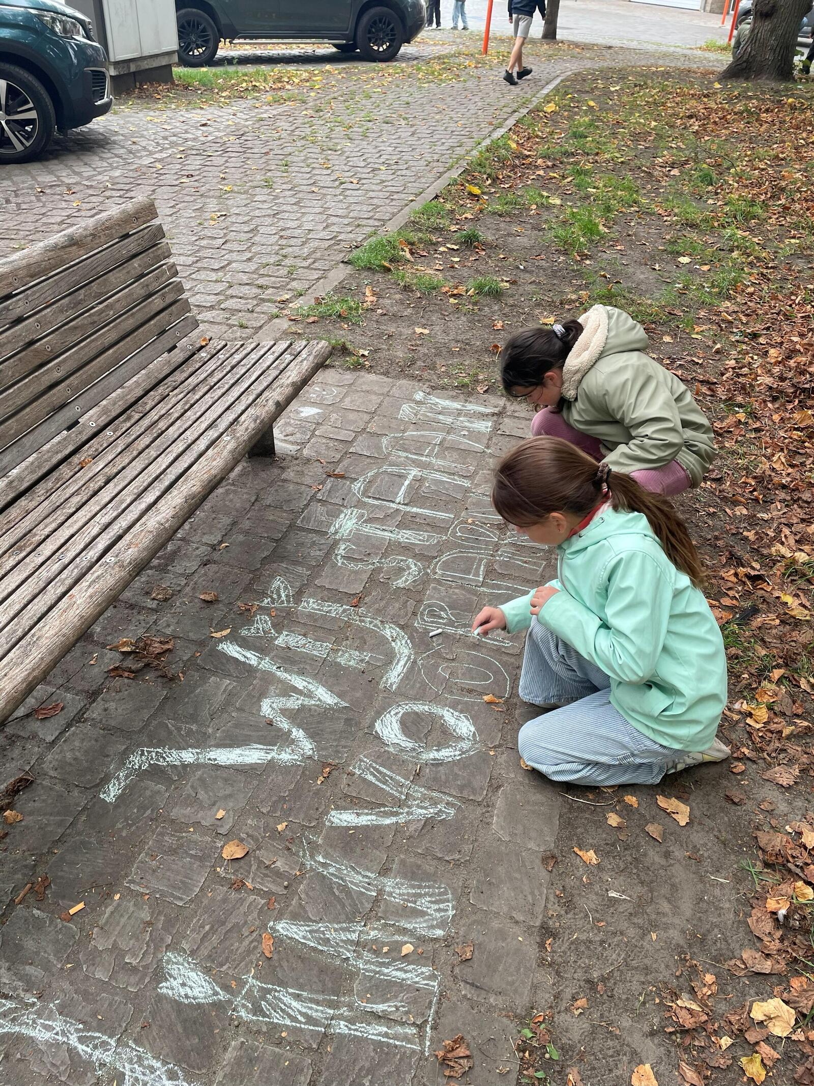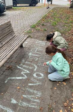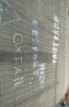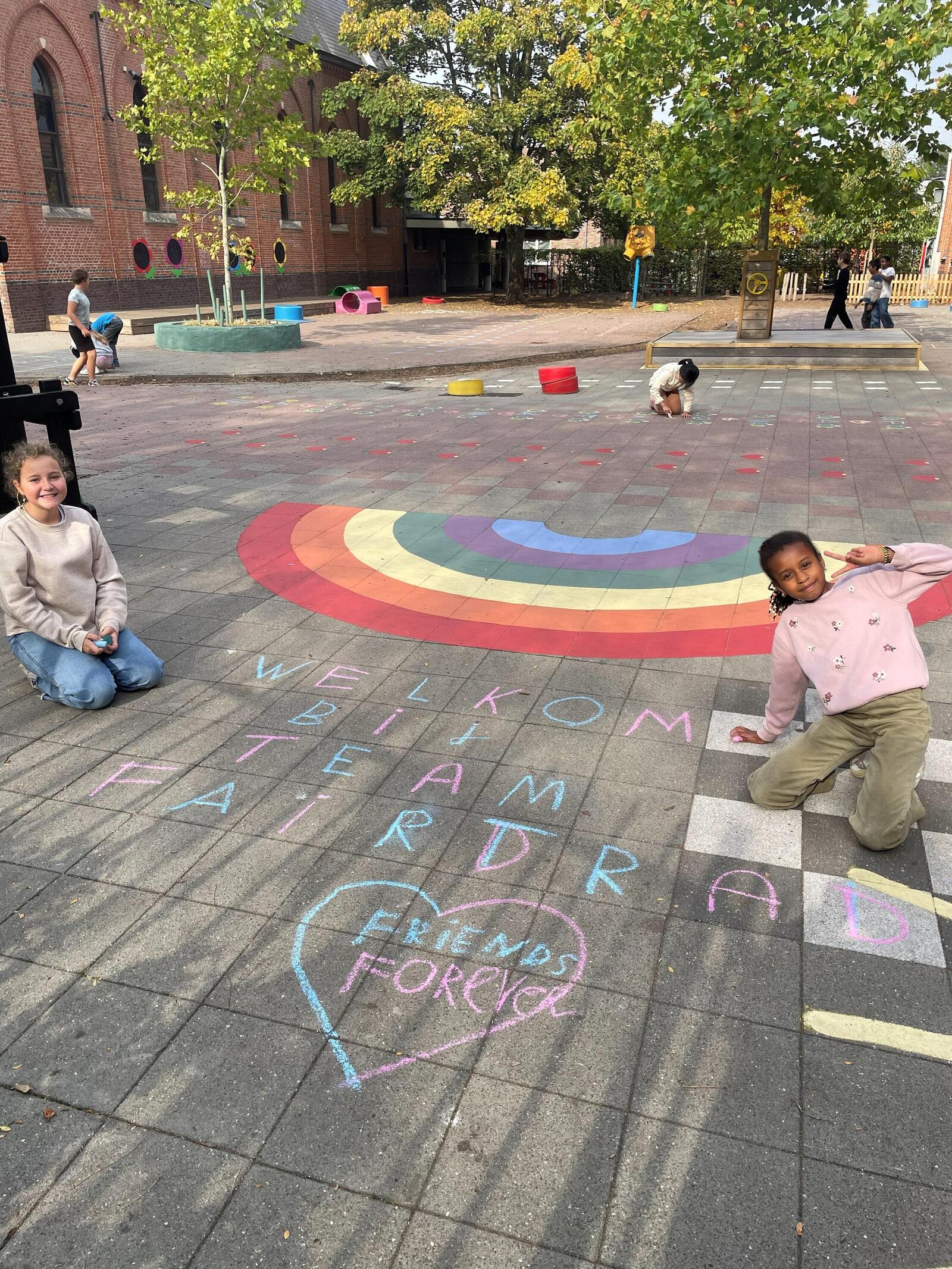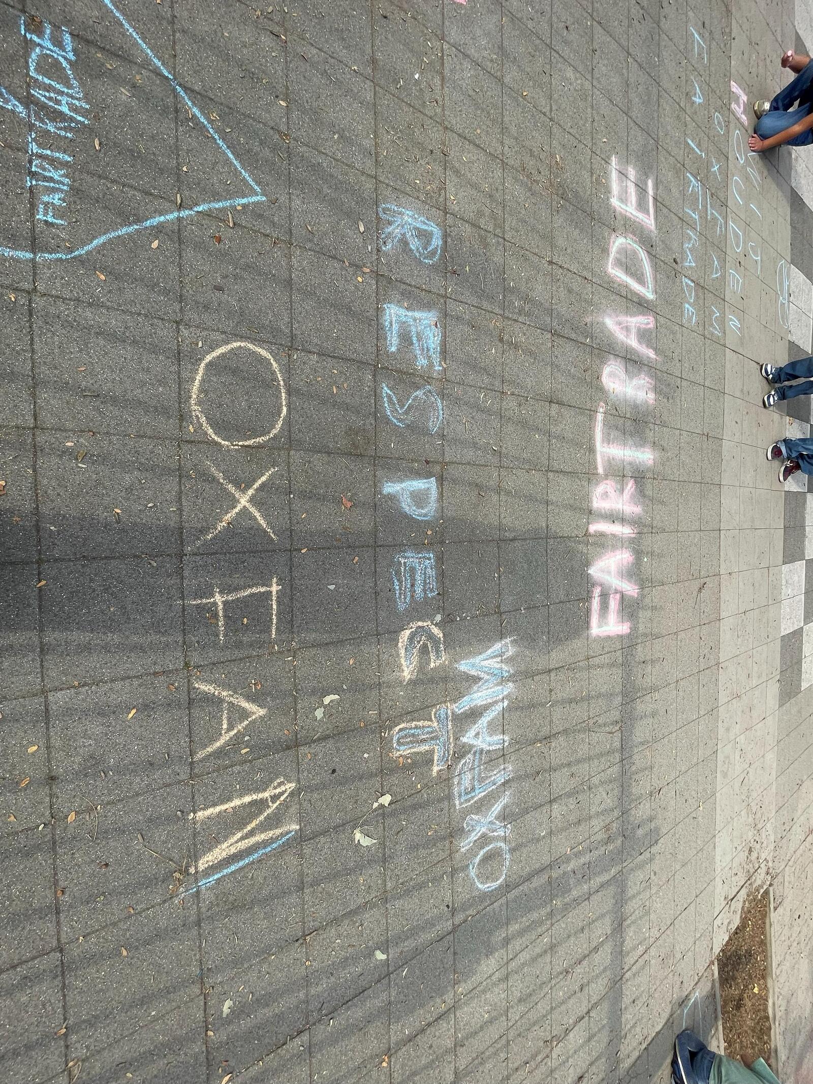 Wij zijn met onze twee vijfde leerjaren actief aan de slag gegaan. Na wat achtergrond gekregen te hebben & het Fairtade lied te hebben gezongen, zijn we aan het brainstormen geslagen en probeerden we met onze KLEINE groep een GROOT verschil te maken. We werkten verschillende ideeën uit en maakten hier 1 mooi geheel van met een DUIDELIJKE boodschap: 'STA STIL BIJ WAT JE DOET!' We gingen dan ook vol enthousiasme de straat op en verspreidden onze boodschap door mensen aan te spreken, door affiches te maken en door duidelijke boodschappen op straat te schrijven met krijt. Wij zijn alvast overtuigd dat we met onze leerlingen een VERSCHIL hebben gemaakt! Ook in onze school vormden we met onze leerlingen een hart, samengesteld uit onze petities en affiches en dat bestond uit sleutelwoorden gelinkt aan Fairtrade. We schreven ook op onze speelplaats korte, maar duidelijke boodschappen om zo onze andere leerlingen te prikkelen en tot denken aan te zetten. Als leerkracht hebben we dit van nabij mogen beleven en kunnen we bevestigen dat onze leerlingen er geslaagd in zijn een kleine groep te bereiken. Wij zijn alvast heel erg trots op die KANJERS van ons die het verschil proberen te maken! :-D