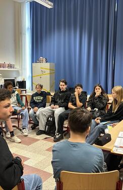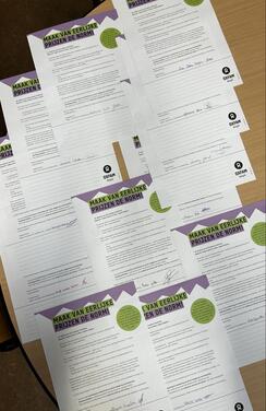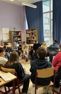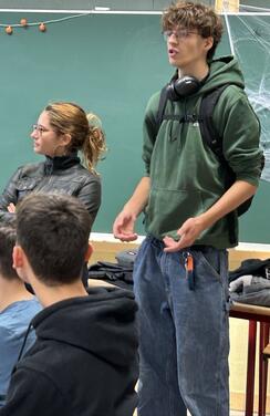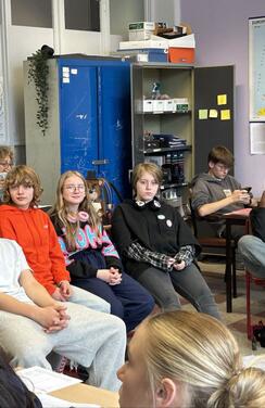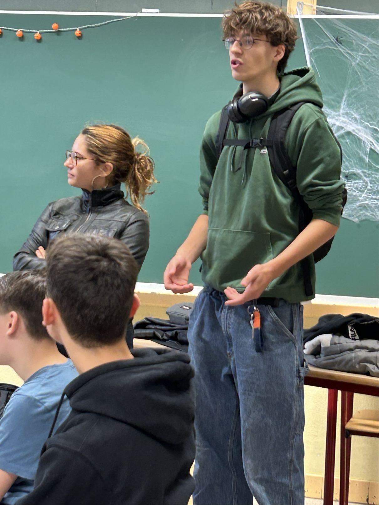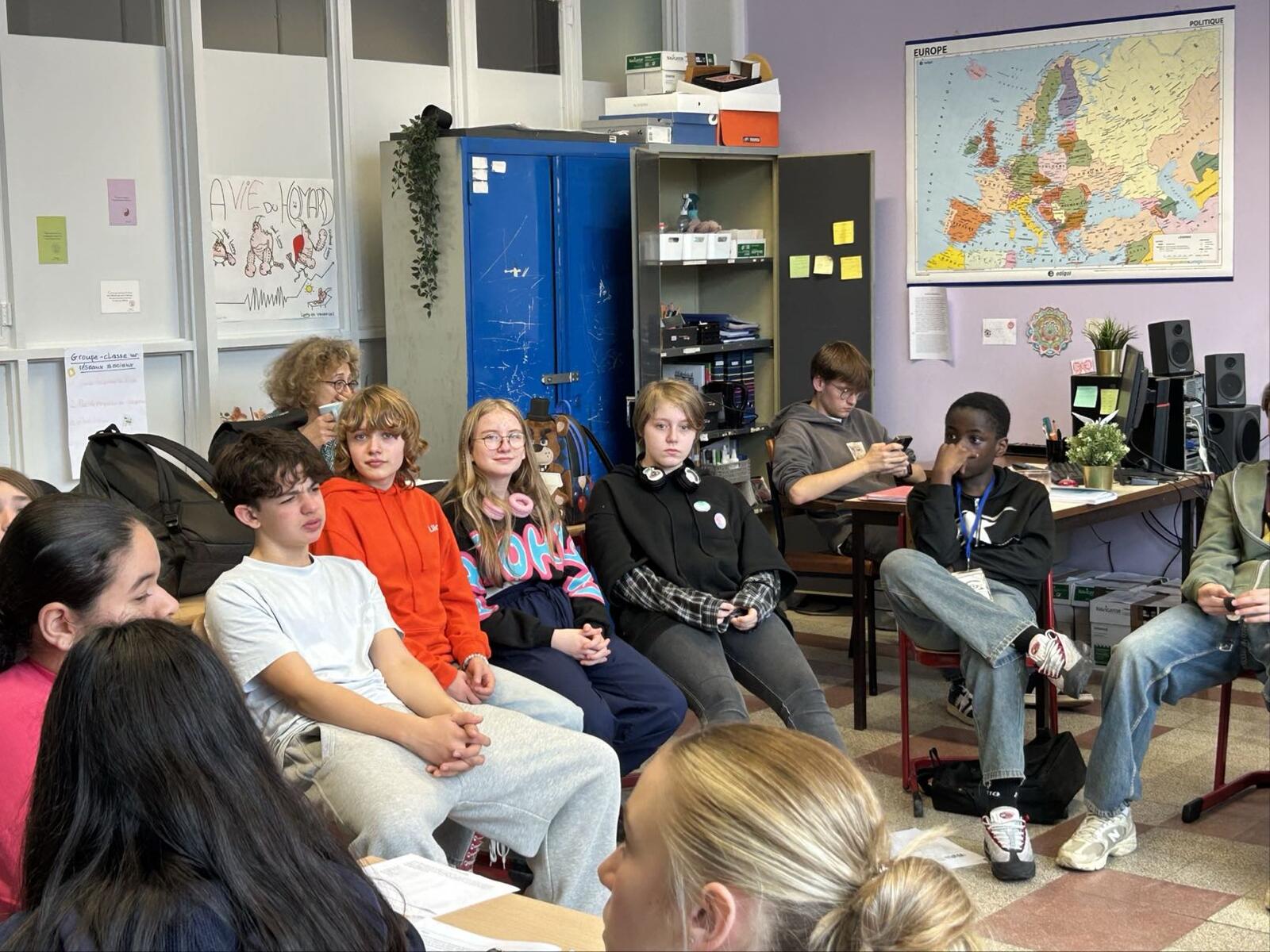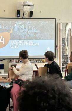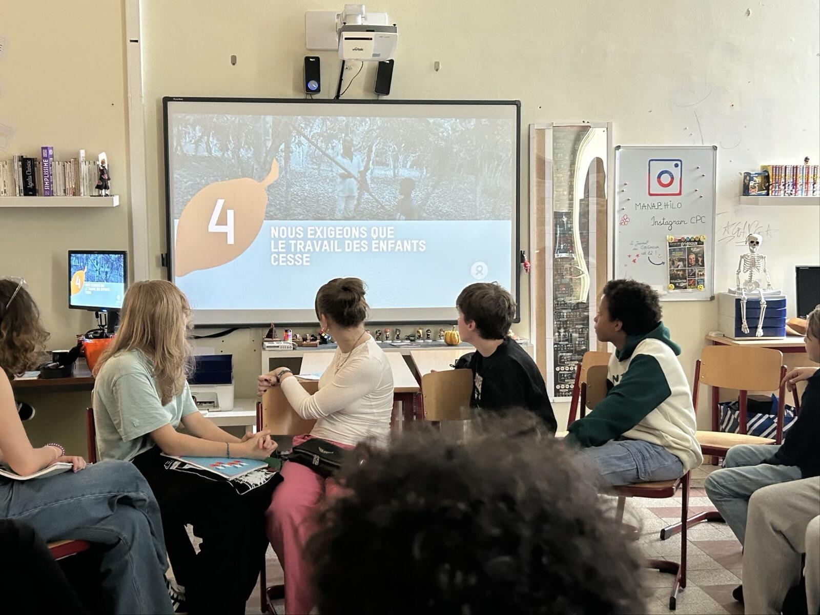 We zitten in zesde jaar op het Atheneum Leonie de Waha. We hebben groepen van twee tot vijf leerlingen gemaakt. Dan zijn we naar de leerlingenraad van de eerste en tweede jaars gegaan. We hebben over eerlijke handel gesproken om de jongste leerlingen van de school te sensibiliseren. We hebben een kleine presentatie gemaakt over wat ze kunnen doen op hun niveau.