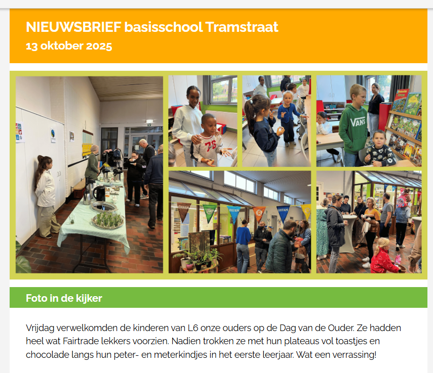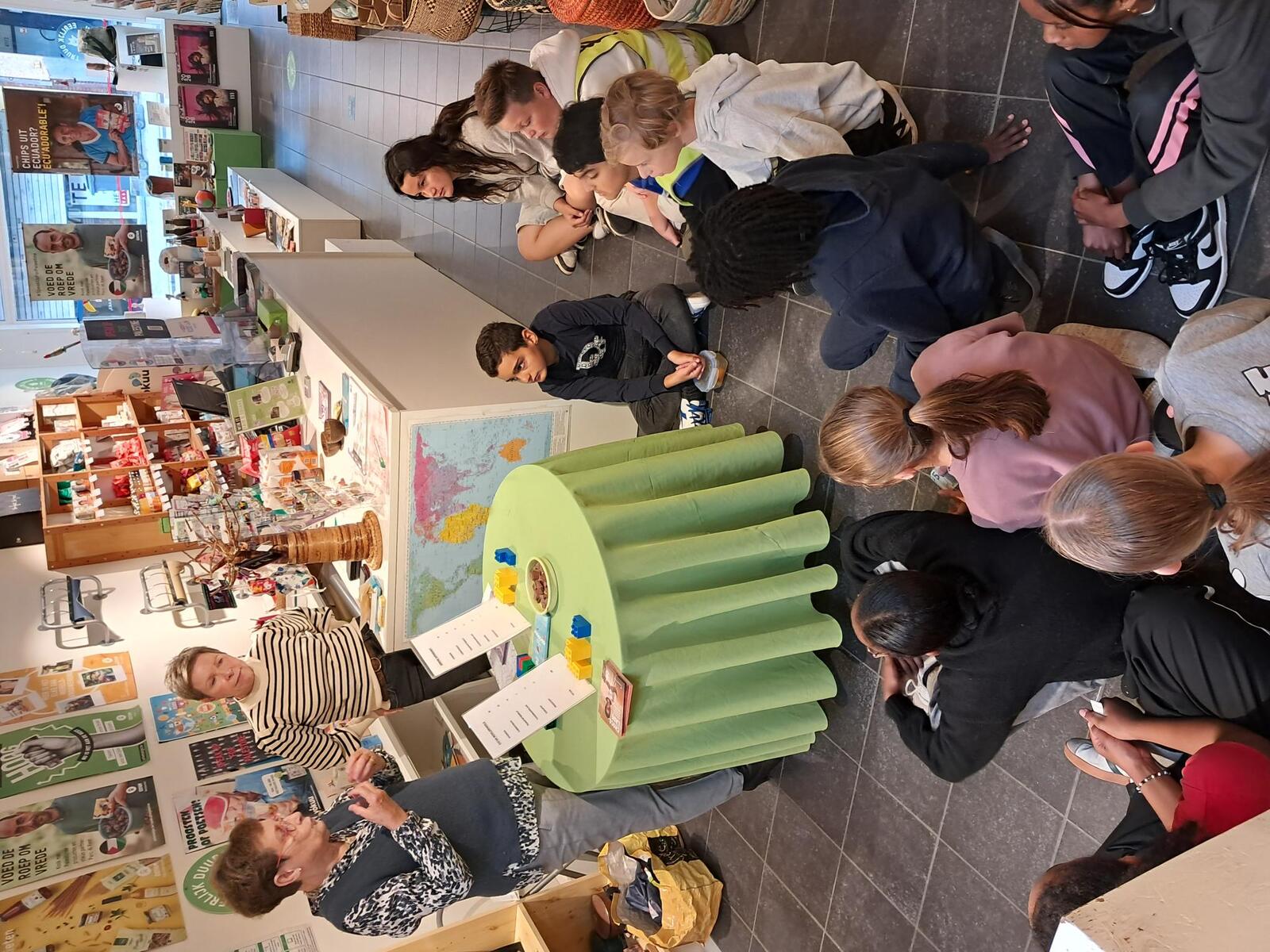 De geven in beide klassen van L6 een reeks themalessen, enerzijds over hoe mooi anders de wereld is in gebruiken en leven, anderzijds hoe oneerlijk de verdeling van middelen is. We bezoeken de wereldwinkel en nodigen de ouders van onze school uit voor 'dag van de ouder', maar maken daar stiekem een themaochtend van om alle ouders te informeren over de week van de fairtrade en het belang ervan.