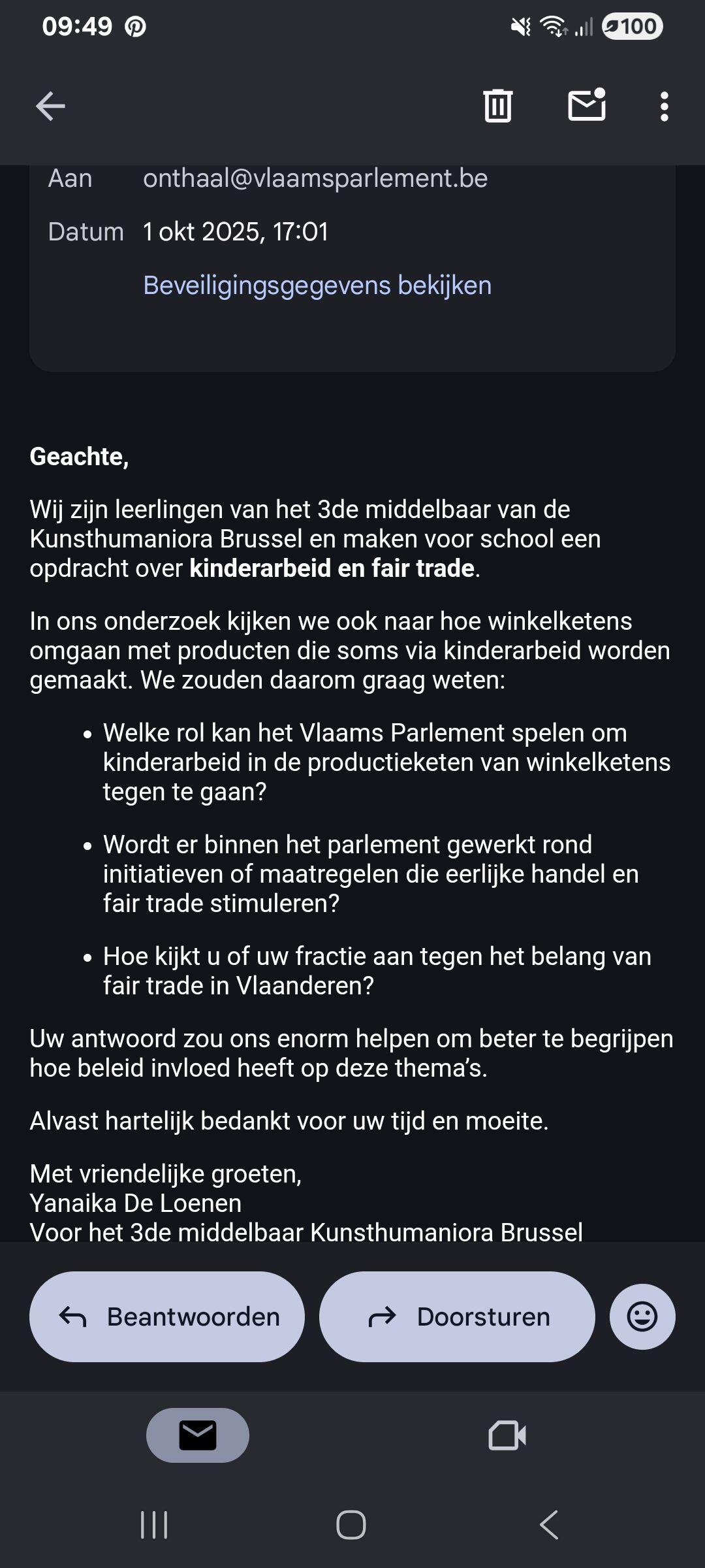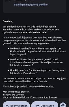 Yanaika stuurde een mail uit naar de beleidsmaker met de vraag om de lat hoog te leggen ivm wetgeving voor grote bedrijven (zorgplicht).