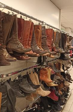 Je kan in onze RE:BEL winkel in Luik kledij kopen aan €8 per kilo. Je kan er kiezen uit een breed aanbod kwalitatieve tweedehandskledij, schoenen, accessoires, linnen... En vooral warme kleding in de winter.